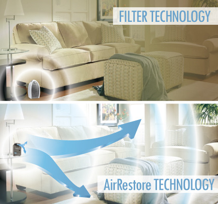 Traditional filter systems passively rely on the air passing through filters, greatly limiting their effectiveness. AirRestore systems produce energized elements to spread to every corner of the room, destroying odors and pollutants at a molecular level. This process is so thorough it can even help with odors in carpeting, drapes and upholstery.
